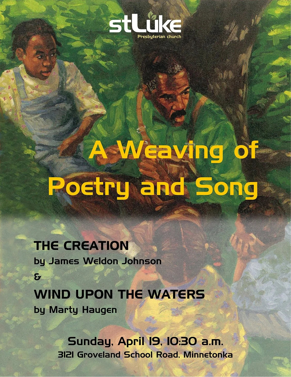 Join us for a special Earth Day worship service as we reflect on our responsibility to care for creation. The service will feature a weaving of poetry and song, adapted from James Weldon Johnson’s poem “The Creation” and Marty Haugen’s hymn “Wind Upon the Waters.”